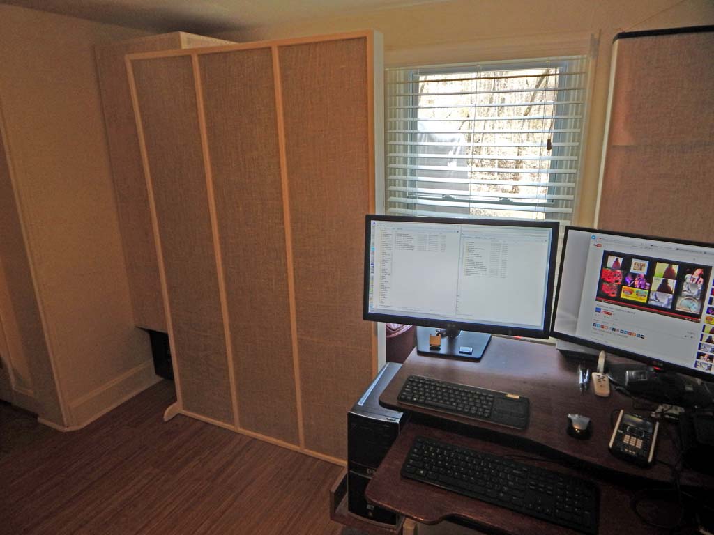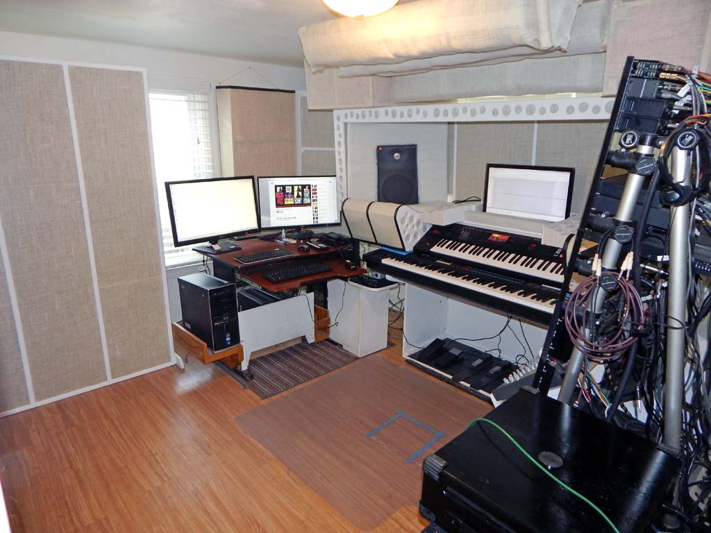 In years past I was not entirely ignorant of acoustics but had not given much thought to acoustics. After setting up the basic equipment in this new space, I spent about six months studying acoustics, performing modest acoustic experiments, and building absorbers. Attempting to make this small room as good-sounding as possible-- As good as it will get while avoiding complete overkill-- Without spending excessive time and money on the project.